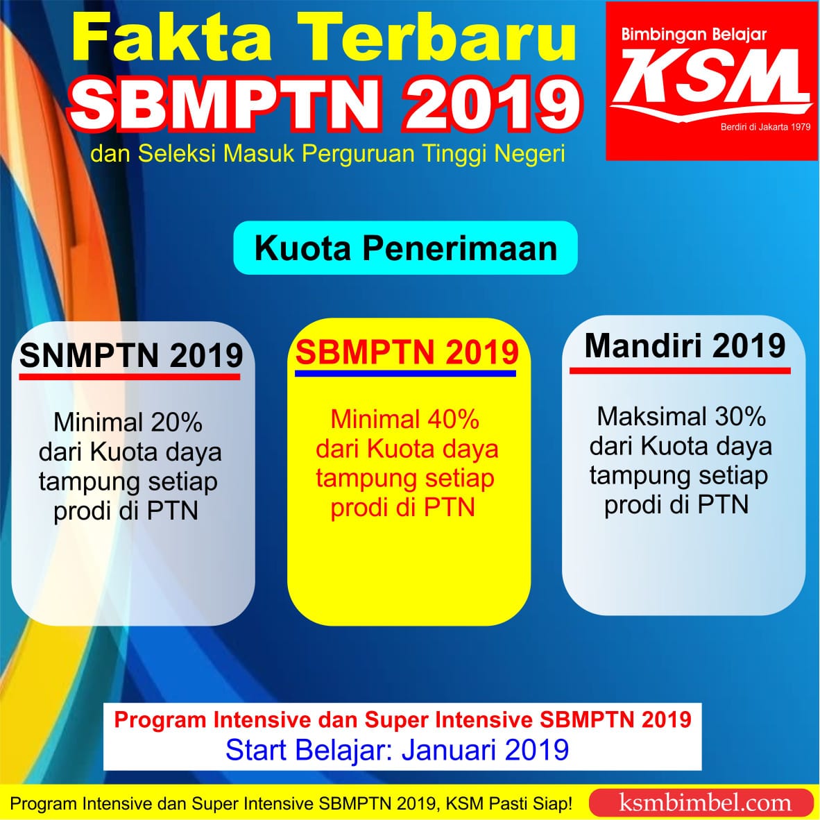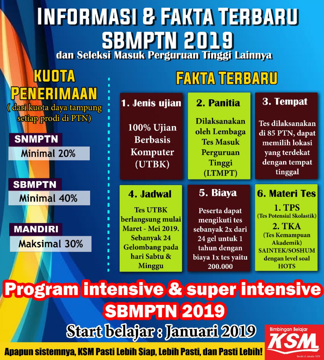 Cukup sekian yaa informasi terbaru SBMPTN dari KSM. Semoga bermanfaat dan menambah motivasi kalian agar siap bertarung di SBMPTN 2019. Jangan lupa Pantau terus Web KSM untuk mengetahui info-info pendidikan terbaru.