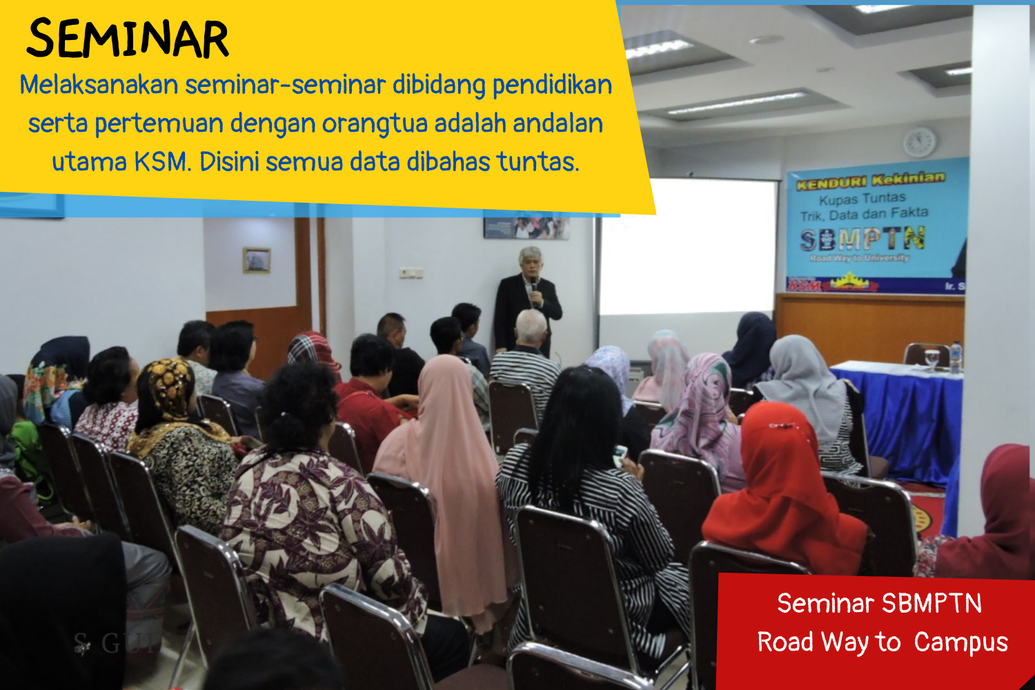 Melaksanakan seminar-seminar di bidang pendidikan serta pertemuan dengan orang tua adalah andalan utama KSM. Di sini, semua data dibahas tuntas